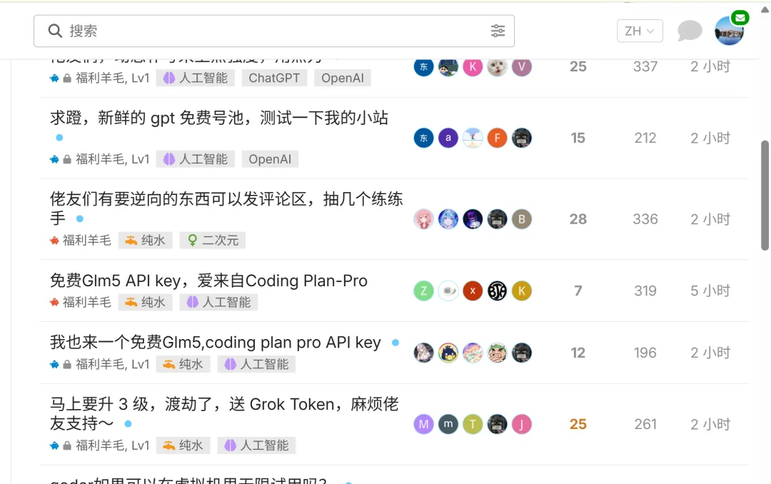 但是这是个宝藏站点,每天会有人分享免费的中转站或者coding plan 以及API key 出来