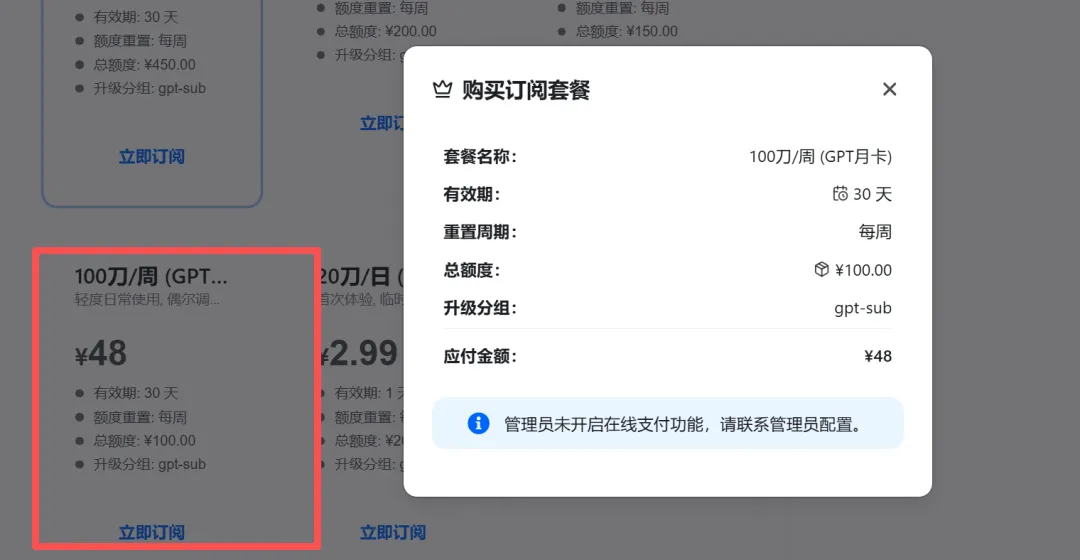 我推荐用100刀每周的套餐。每周100刀的额度,套餐价格是48每月,通过雷神的渠道,首月可享受8折(后续享用9折优惠)