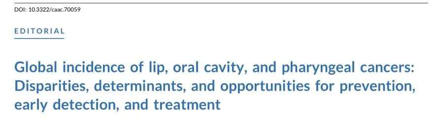 本期《临床医师癌症杂志(CA)》中,拉姆盖团队依托国际癌症研究机构的权威估算数据,系统汇总分析了全球 185 个国家唇口咽癌的流行病学发病全貌。研究统计显示,2022 年全球唇口咽癌新发病例达 75.8 万例,男性发病占比极高,男女发病比例约 7:1;发病部位排序依次为口腔癌、口咽癌、鼻咽癌。地域分布结果提示:中南亚、美拉尼西亚、密克罗尼西亚及波利尼西亚地区口腔癌发病率居高不下;欧洲地区口咽癌高发,同时在北美洲与南美洲男性人群中,口咽癌也是唇口咽癌中最常见的亚型。