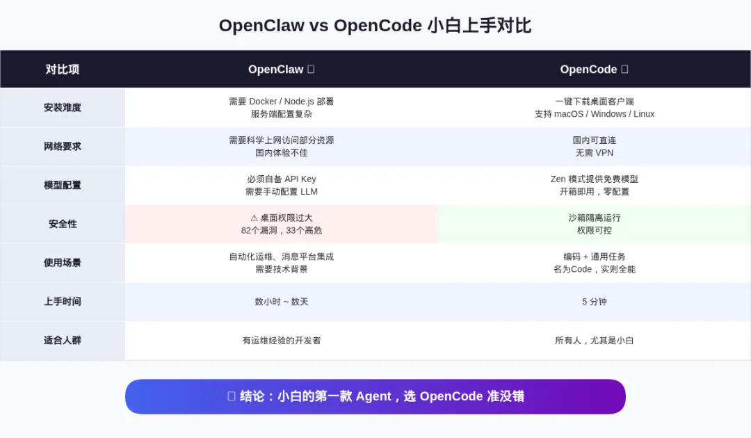 说完 OpenClaw 的问题,我们来看看另一个选择——OpenCode。