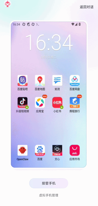 具体来说,百度智能云在云端服务器,部署好了OpenClaw,然后用户在Operator使用云手机访问OpenClaw,也可以直接使用云端的OpenClaw,在云端执行各种任务。