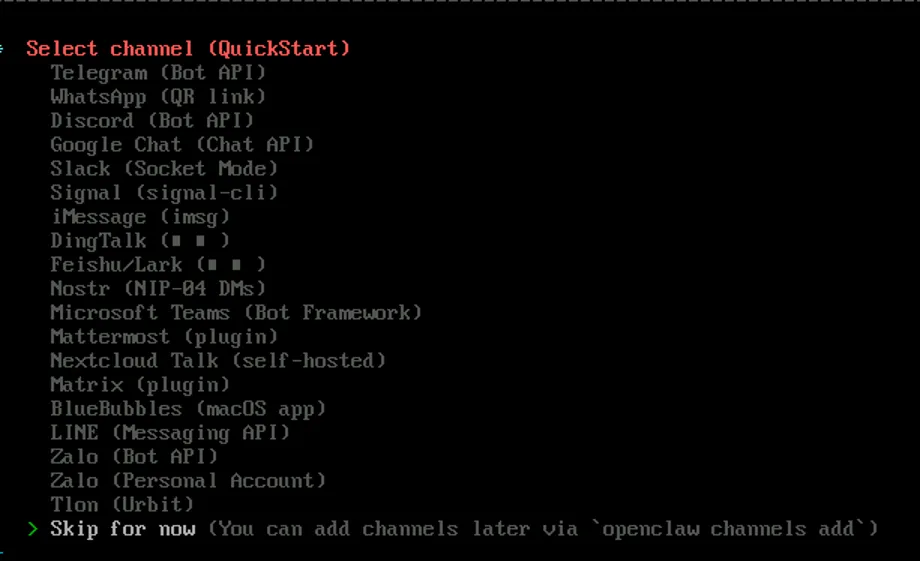 三、准备好Openclaw自带channel的Agent ID、lient ID、Client Secret。准备用下图中那个channel,提前准备好,国内的有飞书和钉钉。