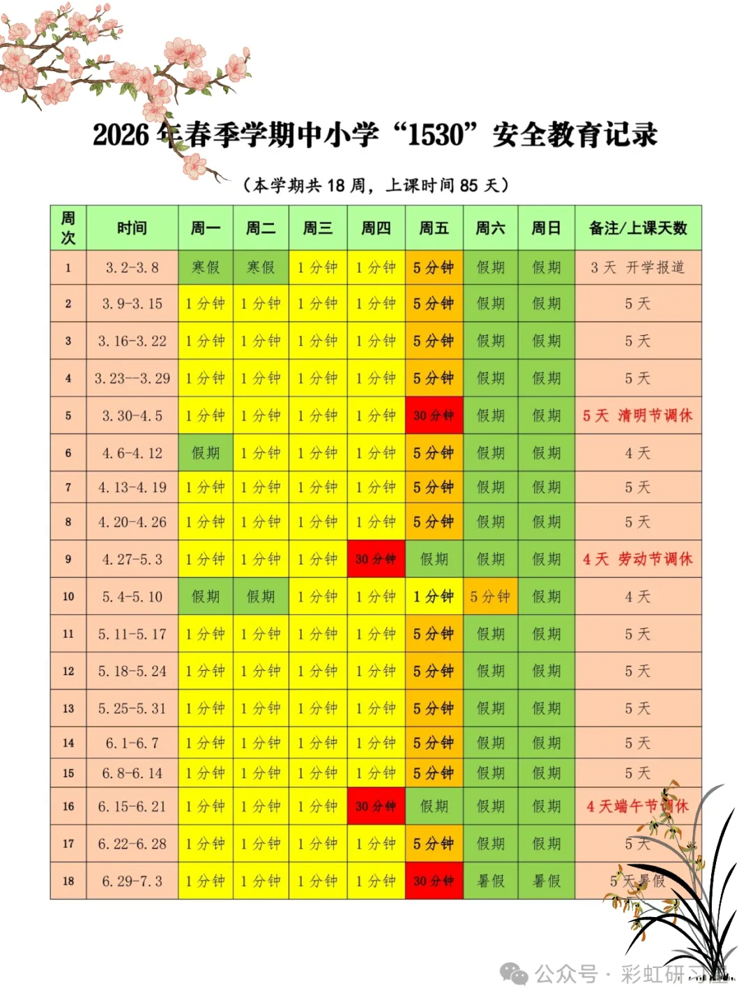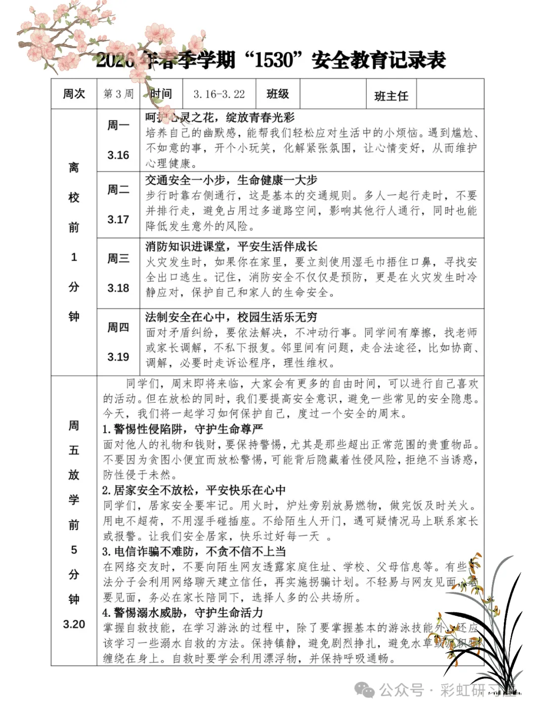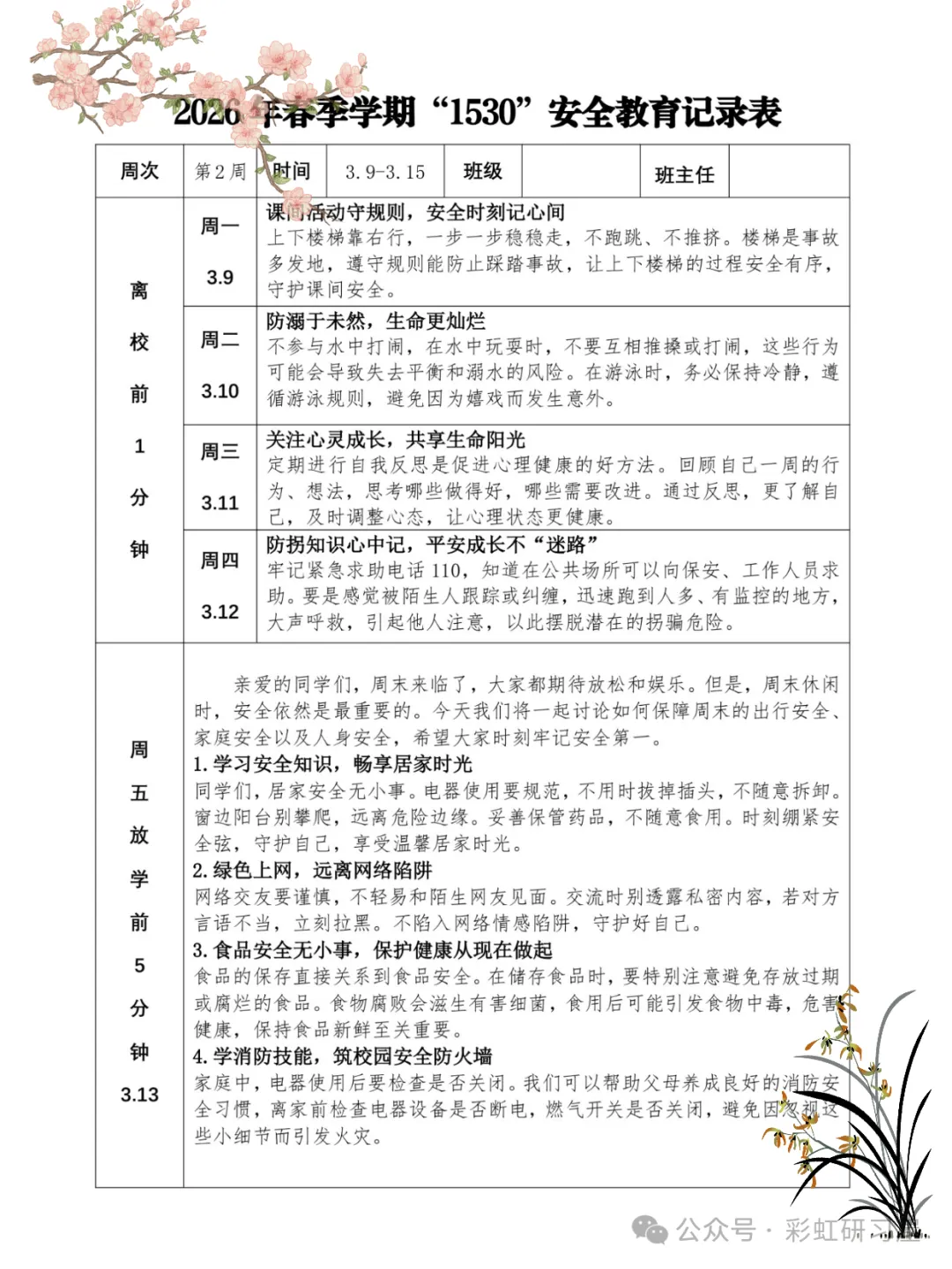 直接下载使用,26 年春季1530 安全教育记录表”写完了!
