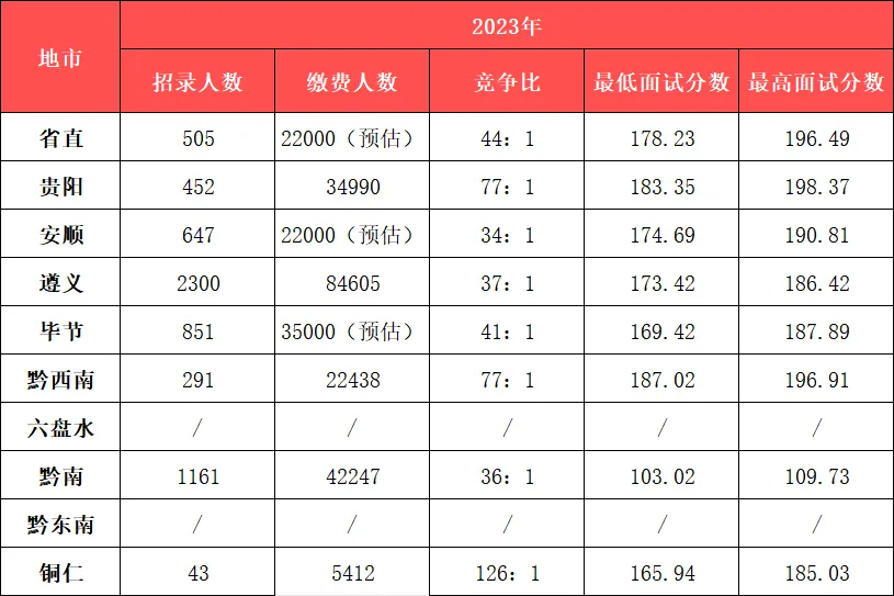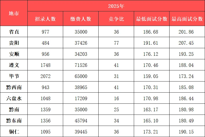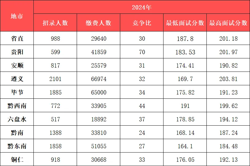 贵阳市直:进面平均分约188.1分,最高分243分。