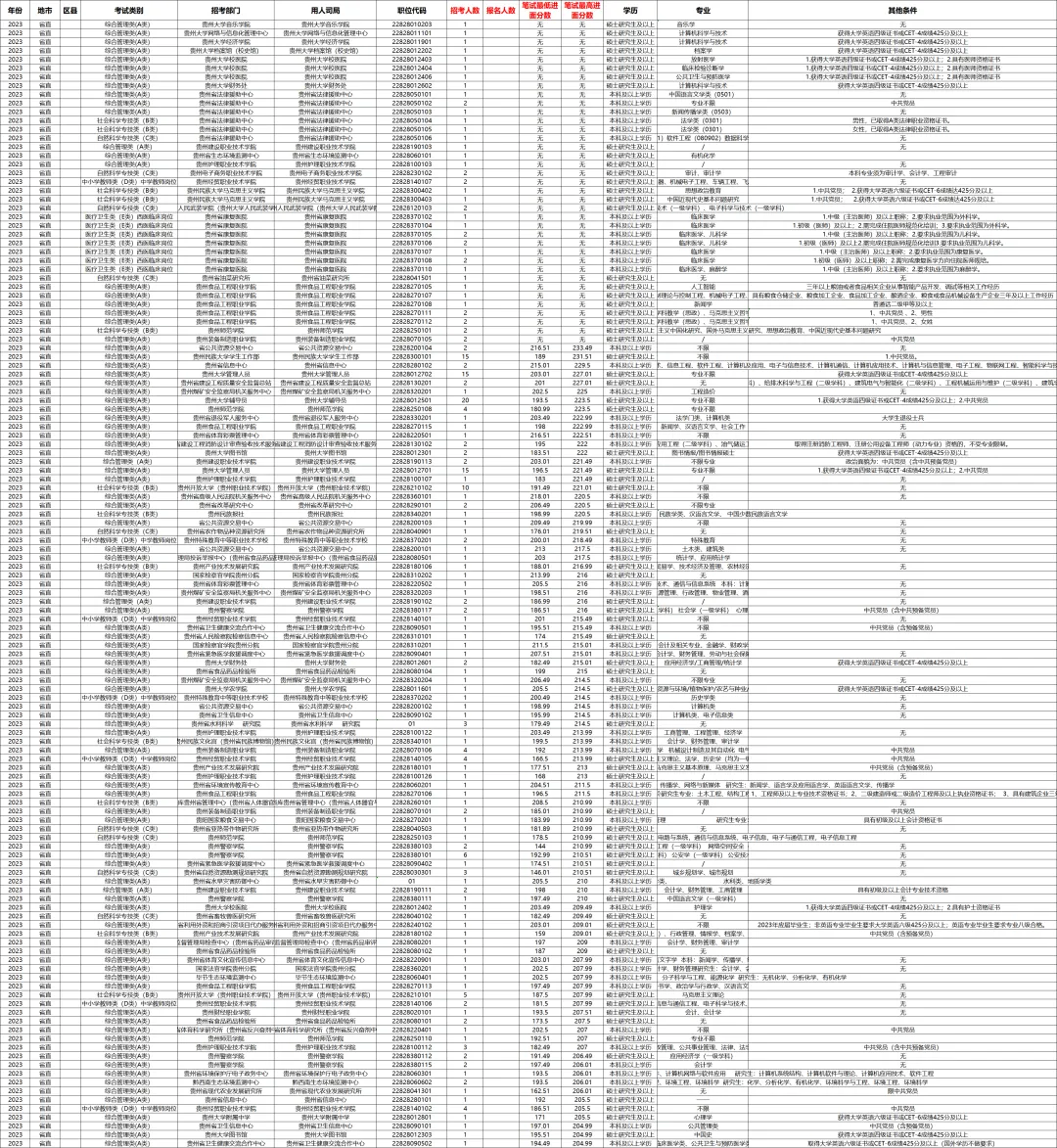 ✅2023年5月07日贵州事业单位联考进面分
