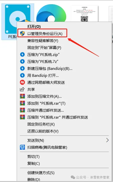 5.打开解压后的文件夹,鼠标右击【PE工具箱】选择【以管理员身份运行】。