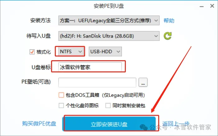 7.点击【立即安装进U盘】(确认U盘卷标名称是否为自己插入的U盘名称)。