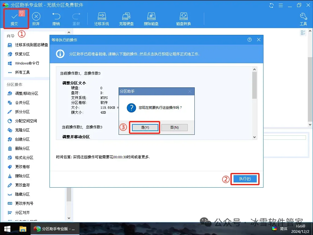 3)①点击【提交】②点击【执行】)③点击【是】。
