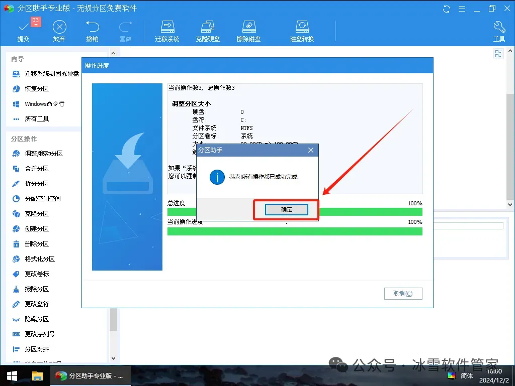4)点击【确定】,磁盘拆分成功!如果需要拆分多个磁盘,可按此方法继续拆分。