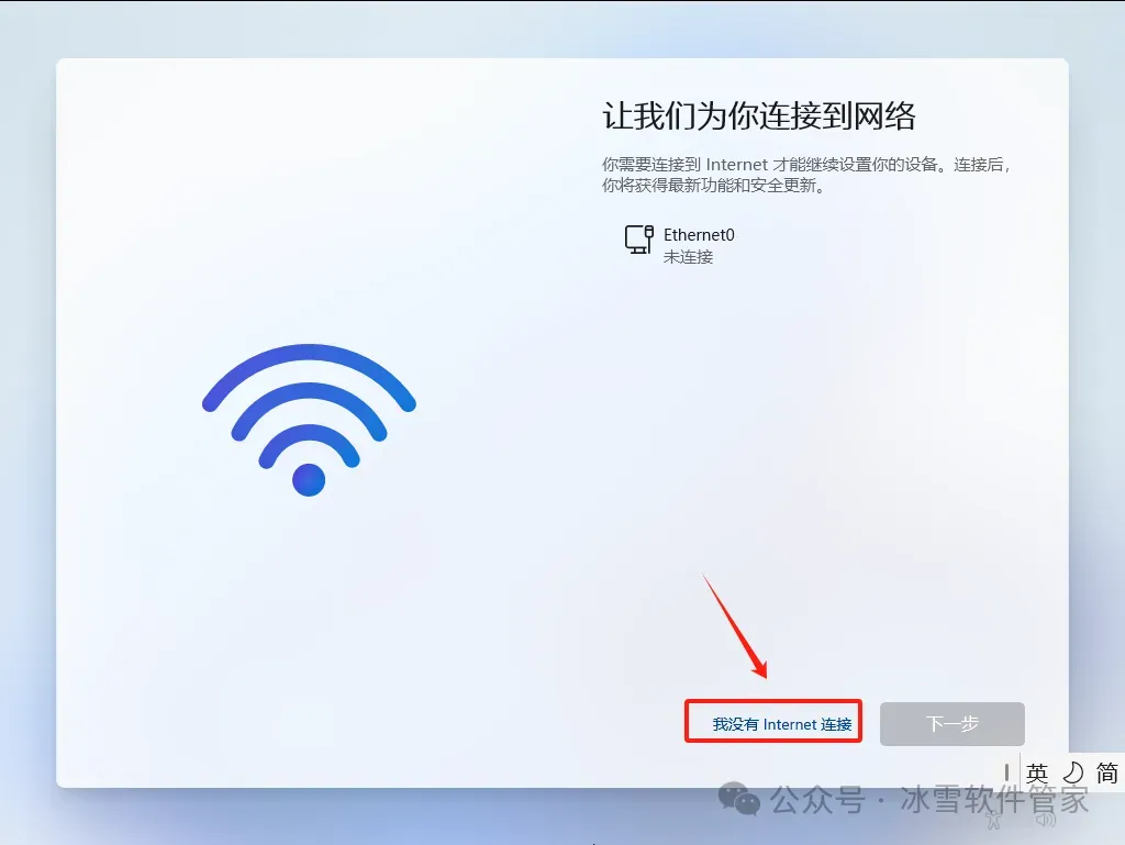 15.点击【我没有 Internet连接】(确保网线已经拔掉,不要进行联网操作)。