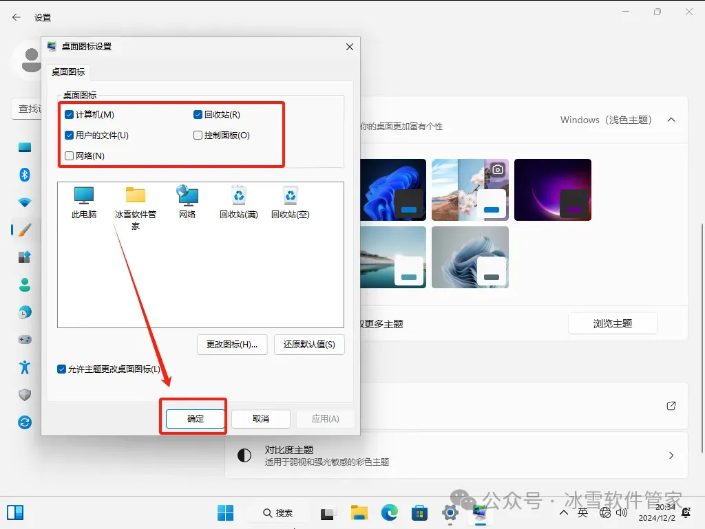 25.勾选【计算机】,然后点击【确定】,此时桌面就会显示计算机图标。
