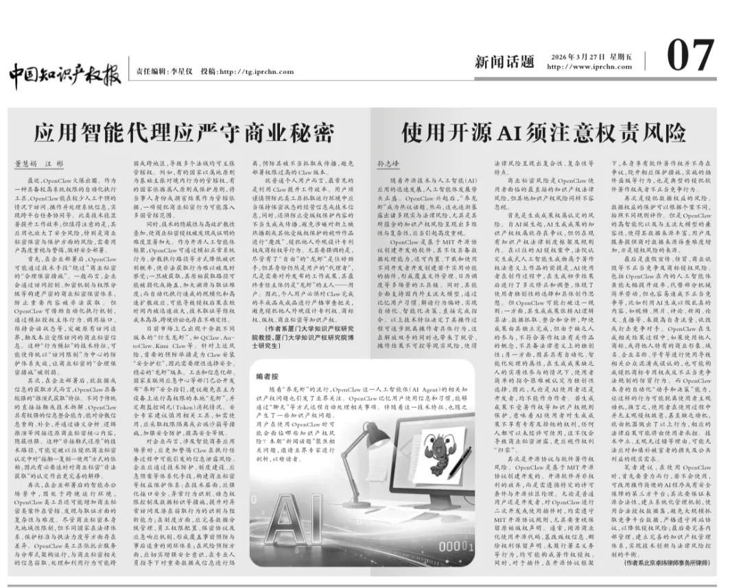 原载于《中国知识产权报》2026年3月27日第7版 “新闻话题”