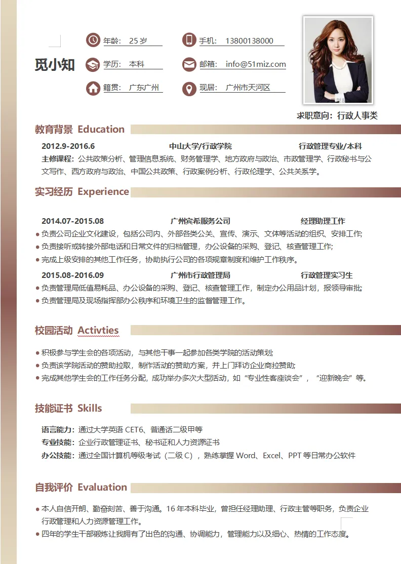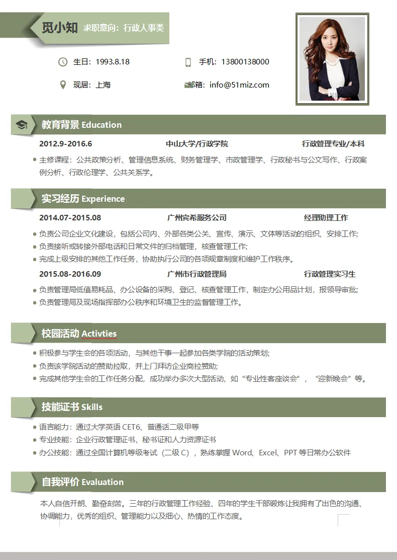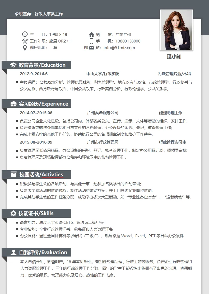 极简简约人事行政个人简历模板