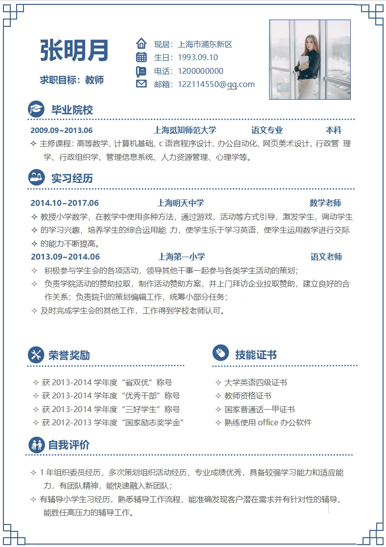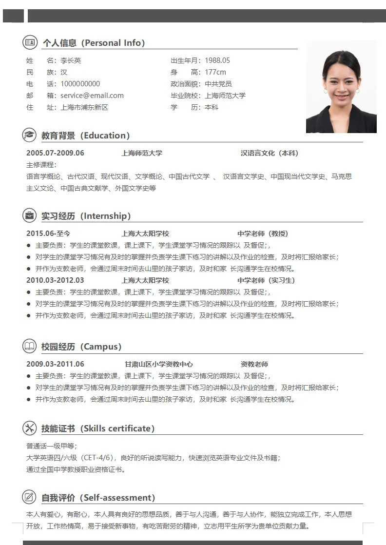 简约中国风教师老师个人简历模板