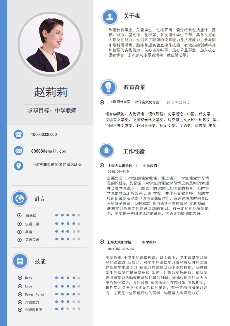创意简约中学教师个人简历模板