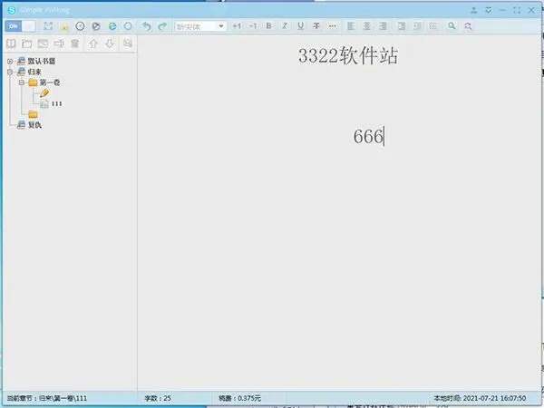 简单写作,领凡网络出的免费网文写作工具,专门给网络写手用的。 窗口里打字就自动保存,电脑死机断电也不怕,下次打开原样给你摆出来,不用操心意外,专心码字就行。自带小说大纲、随机取名、资料库、敏感词过滤,省得你写到一半担心审核过不了。写的时候缺素材,输入关键字它自动从网上给你整理相关资料,挺省事。