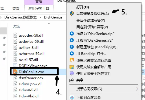 4.点击DiskGenius安装程序,5.右键以管理员身份运行