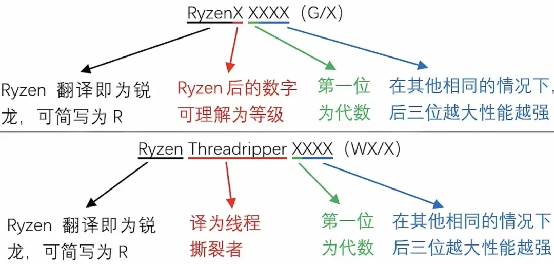 关于AMD这边,常见的系列:羿龙、速龙、锐龙、推土机。后面的WX或者X也是性能好的意思。