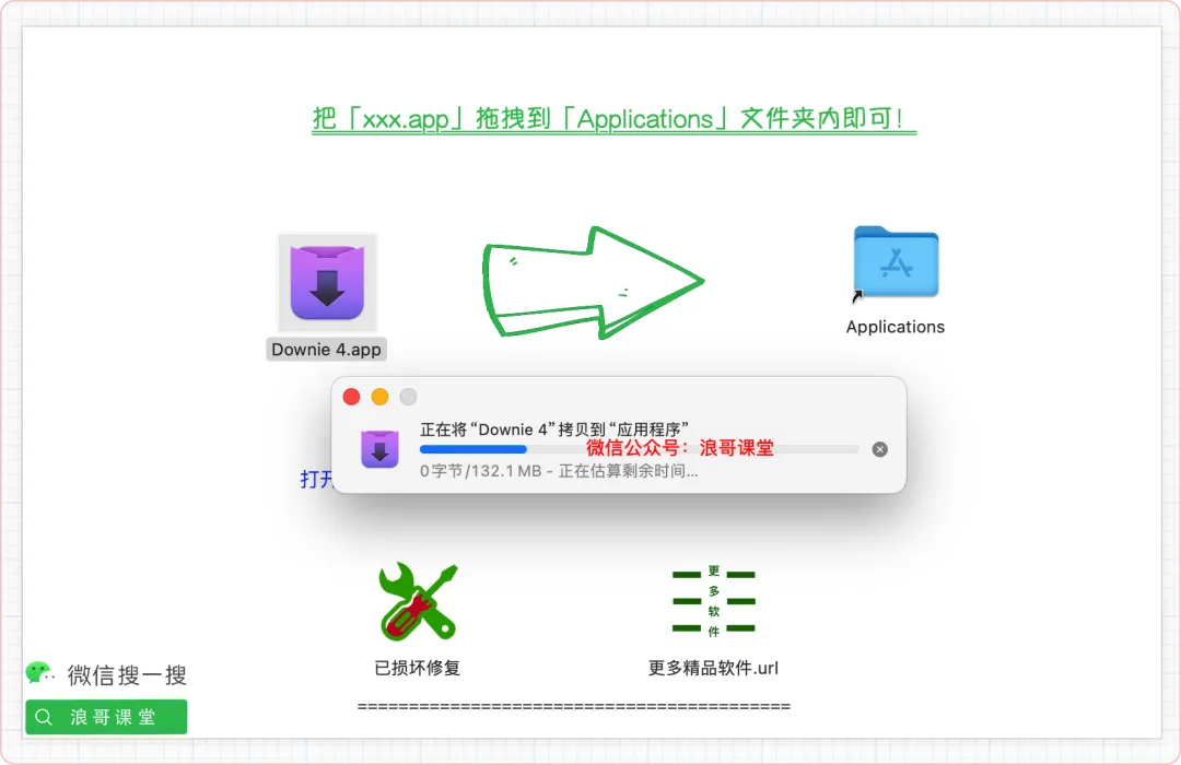 在「浪哥课堂」公众号后台回复:Downie 即可获取网盘下载链接!