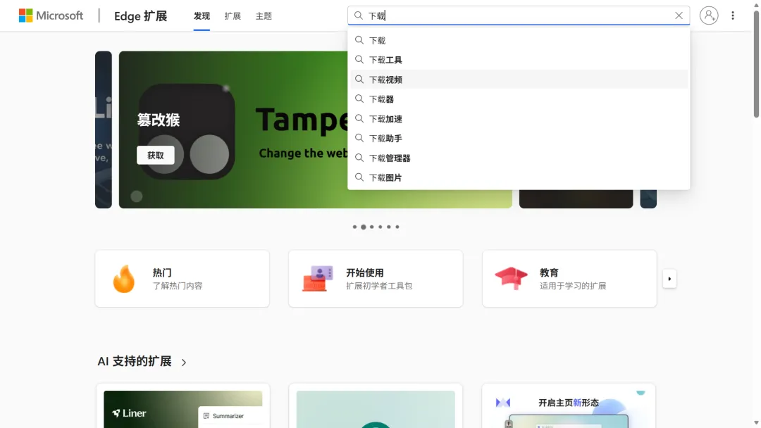 进入商店后,在顶部搜索框,输入对应扩展名称,找到官方版本,点击【获取】即可自动安装;