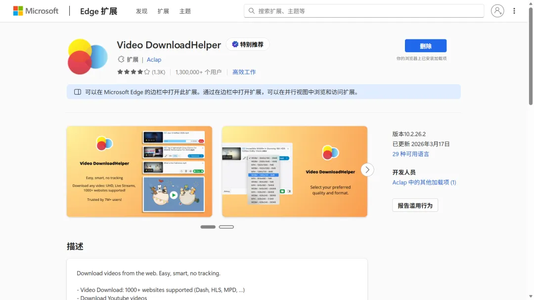 二、Video DownloadHelper:全能老牌,兼容性拉满