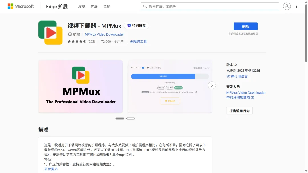 针对部分音视频分离的网页视频,普通扩展下载只有画面或只有声音,这款扩展可自动完成音视频合并,下载即完整高清视频,无需二次剪辑。