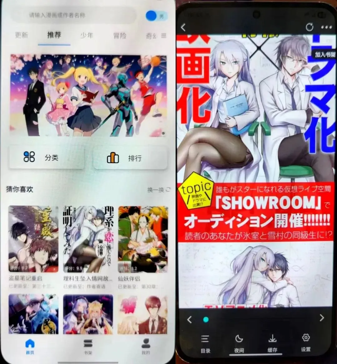 依然是大家喜闻乐见的漫画APP,应该还是以前那类换壳软件,不过现在也更新了体验还行。无需登录打开即用,各种国日韩美漫画都能看,并且还支持下载,更新时间也挺新,喜欢看漫画的小伙伴可以当个备用。由于软件不让截图只能拍照随便搞下了,见谅
