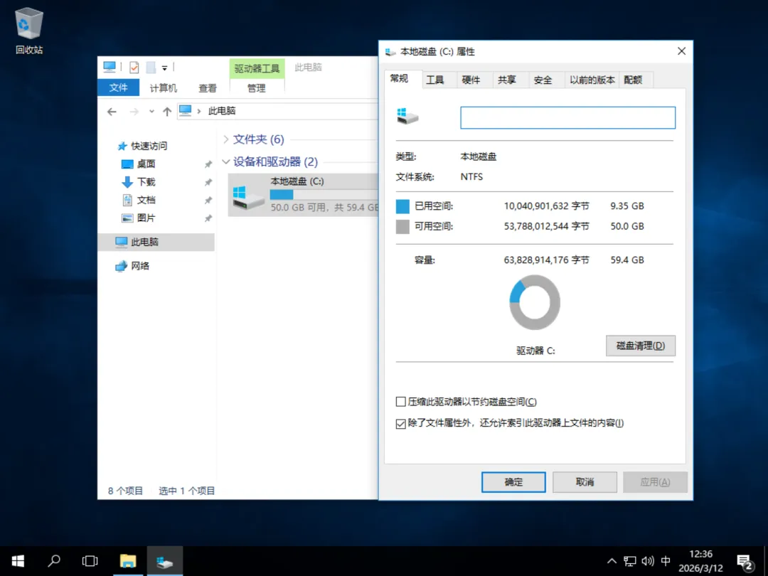 C盘初始占用空间