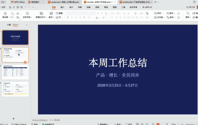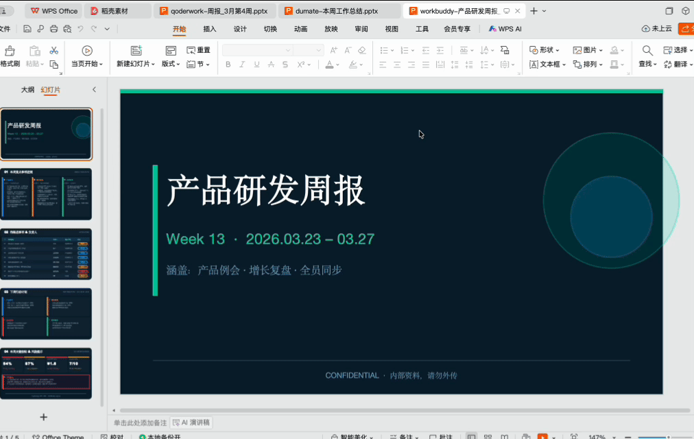 QoderWork肯定是不能接受的,时间最长,做出来的这份PPT还用不了。