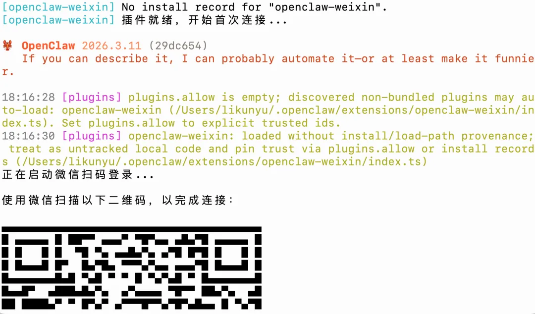 npx -y @tencent-weixin/openclaw-weixin-cli@latest install