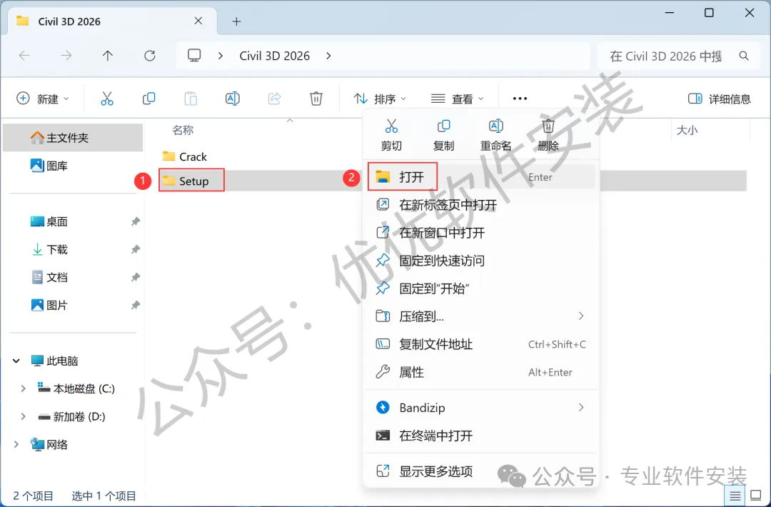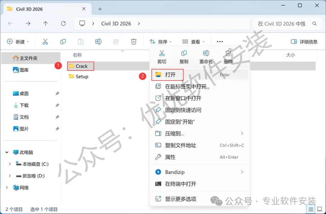 10、回到Civil 3D 2026文件夹,找到【Crack】文件夹,右键【打开】它
