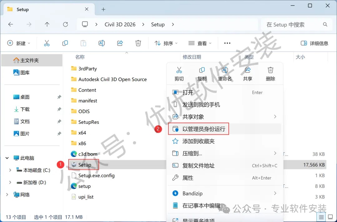 1、下载Civil 3D 2026软件安装包到电脑上,右键选择【解压到Civil 3D 2026\】