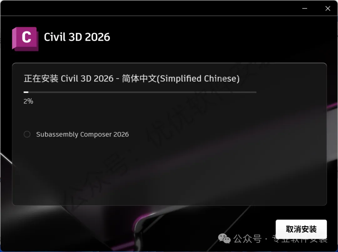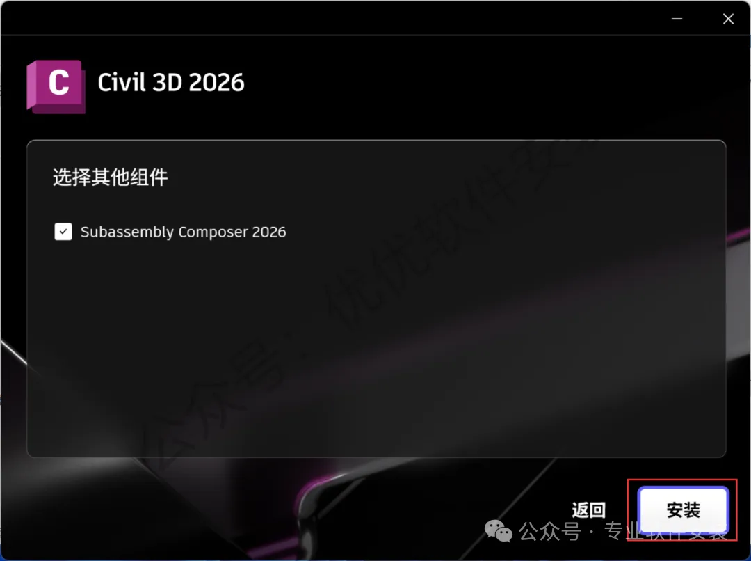12、找到并选中【Civil 3D 2026】,再点击【安装】