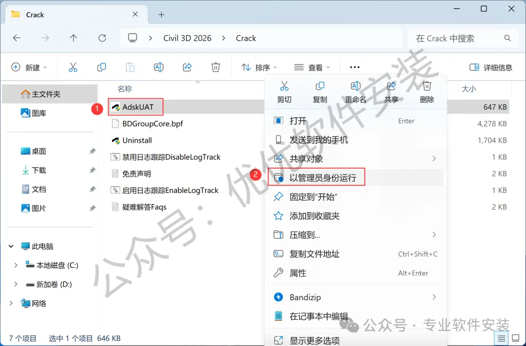 11、找到【AdskUAT】文件,右键选择【以管理员身份运行】它