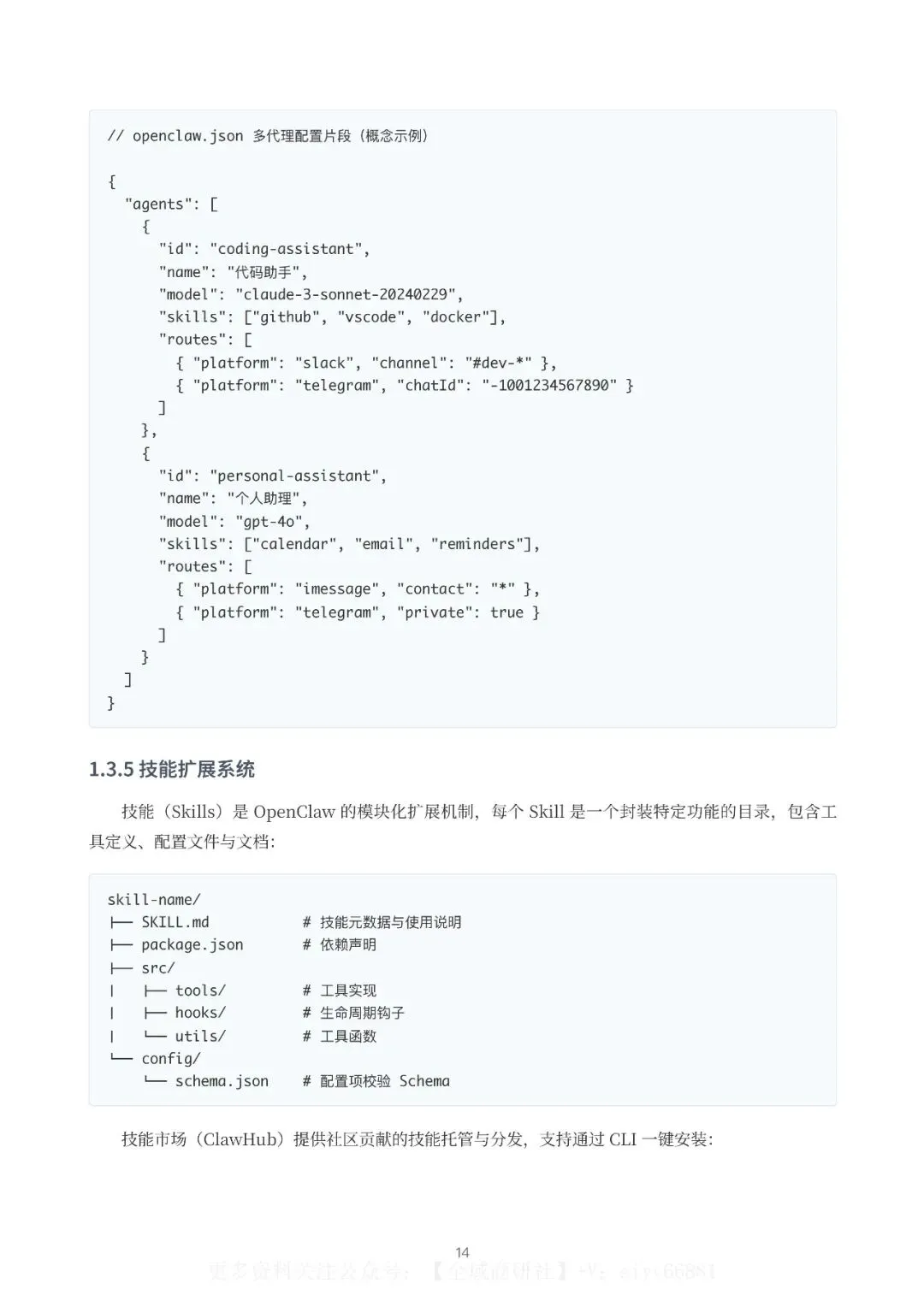 《OpenClaw完全指南》308页内容系统性地涵盖了以下五大核心板块: