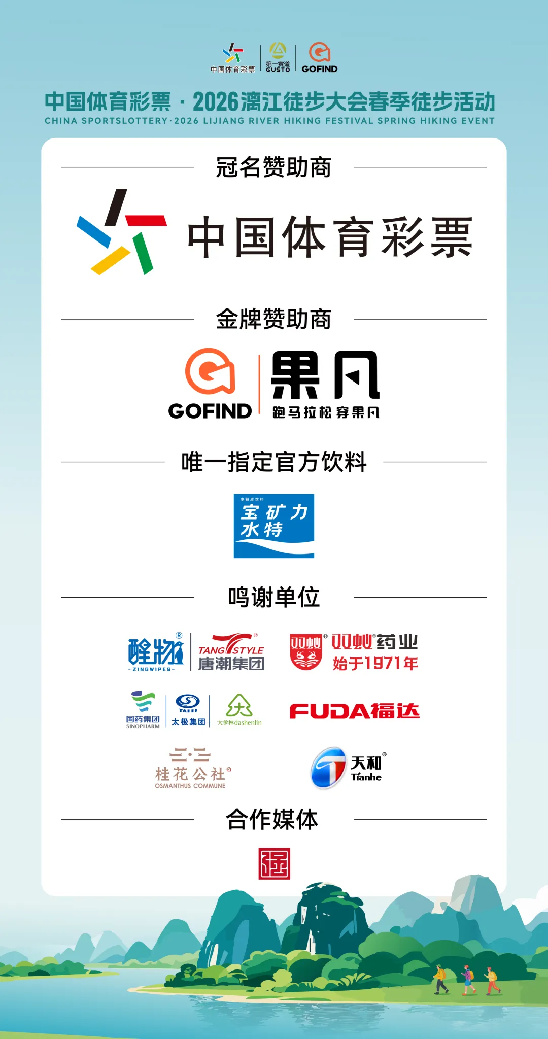 中国体育彩票·2026桂林漓江徒步大会春季徒步活动圆满落幕!感谢每一位用脚步亲吻漓江的您,让这个春天因行走而更加生动。