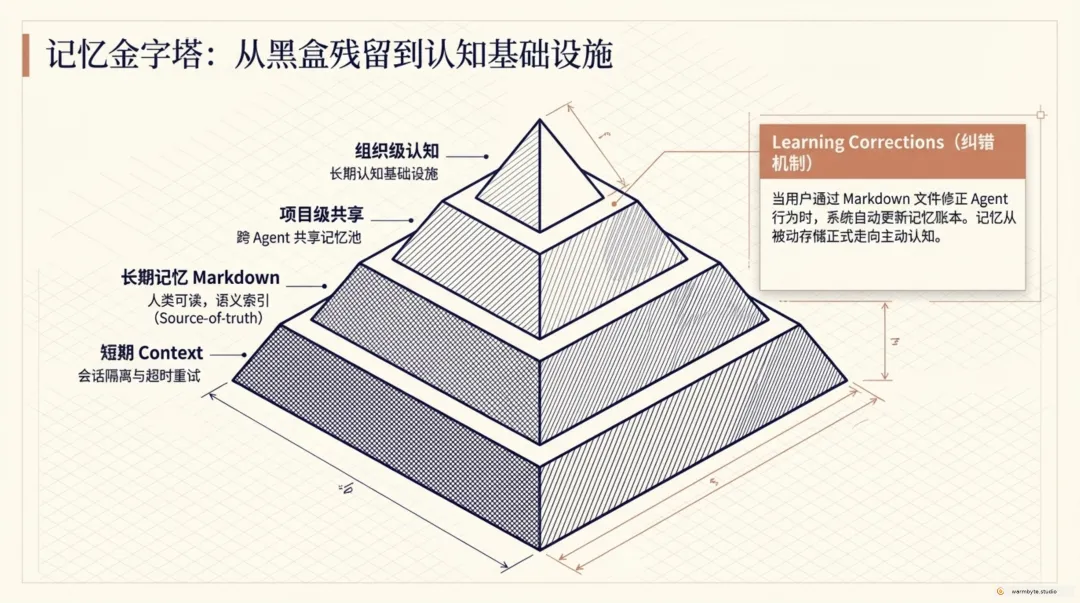Memory(记忆层) —— Markdown 存储 + 语义索引 + Learning Corrections