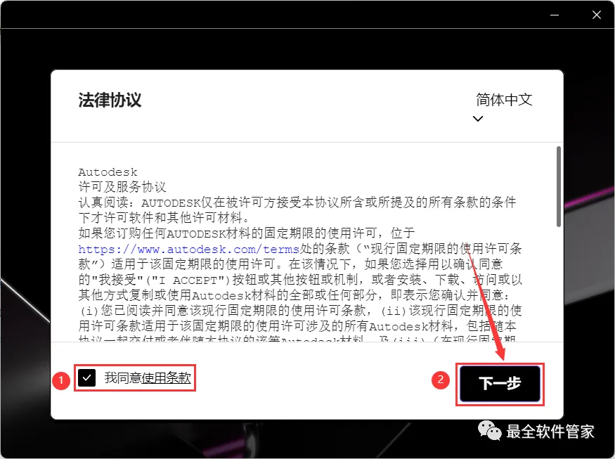7、勾选【我同意】,再点击【下一步】