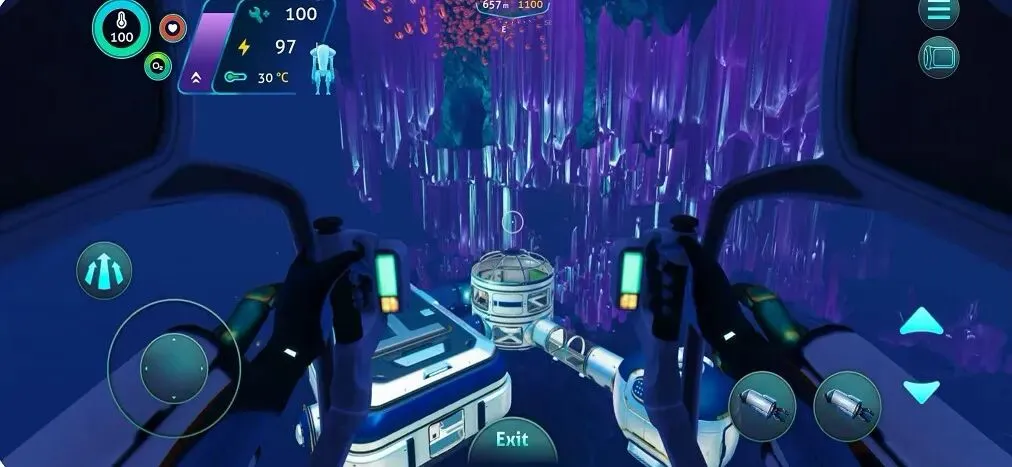 **新增体温系统,极寒生存更硬核**:在冰面、暴风雪、寒风区域停留过久,体温会持续下降,一旦归零直接Game Over。你必须制作防寒服、热饮、加热舱,或靠近热能百合等天然热源才能续命;深海虽无严寒,但冰冷海水会影响行动效率,双重生存压力让策略选择更丰富,再也不是单纯的“下潜-采资源-上浮”循环。