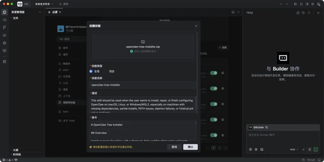 我把安装过程中遇到的一系列问题,总结成了 Skill,封装好了。这个 Skill 在 Trae 里可以直接添加。
