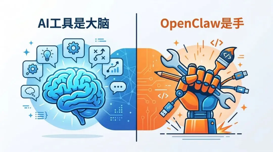 我的理解特别简单——AI 工具是“大脑”,OpenClaw 是“手”。