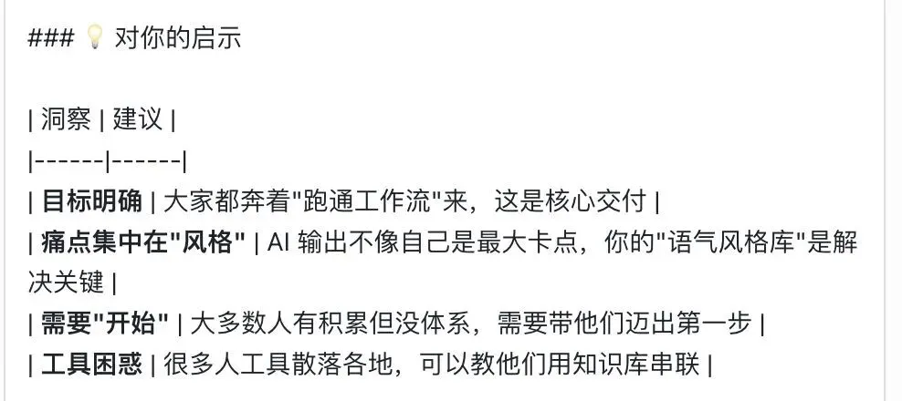 后来我想清楚了。我用 AI,是为了把经验变成资产。不是简单的“产出更多内容”,是让我积累十年的解决方案能力,能够被更多人用上。这才是我想要的。