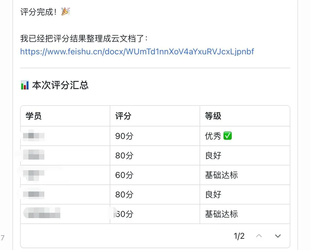 以及交付中的学员提交作业,OpenClaw 自动批改、给出反馈、生成报告,我只做最终审核