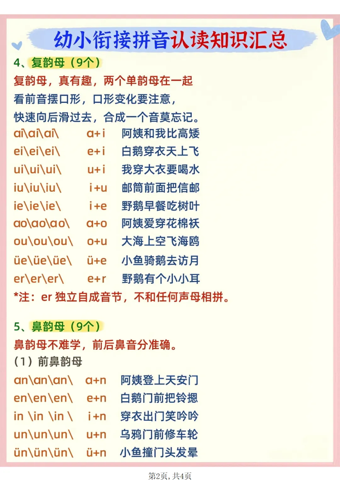 【免费下载】幼小衔接语文 拼音认读知识汇总,PDF电子版,可打印,共4页,先保存,以免资源失效