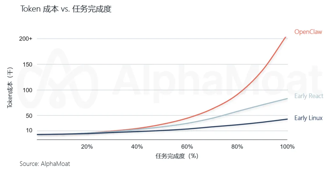 第二层是成本的不可预测性。 由于"幻觉循环",Agent 可能在错误路径上持续重试,单次任务的成本上限是玄学。据 AlphaMoat 调研,要解决最后20%的复杂任务,Token 投入需在基础水平上增加8~12倍。对企业级采购来说,这比"贵"更致命——预算无法被管控。