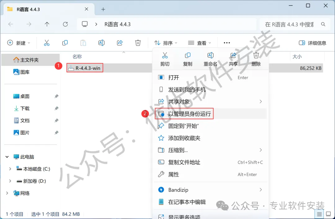 1、下载R语言 4.4.3软件安装包到电脑上,右键选择【解压到R语言 4.4.3\】