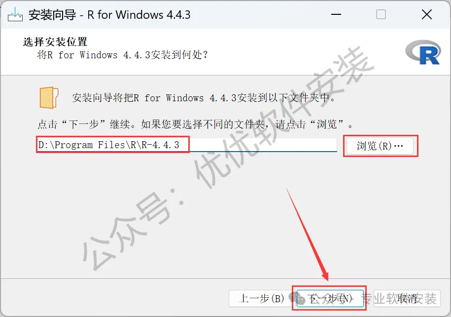 6、软件默认安装在C盘,可自定义更改软件安装位置,这里小编选择安装在D盘;点击【下一步】