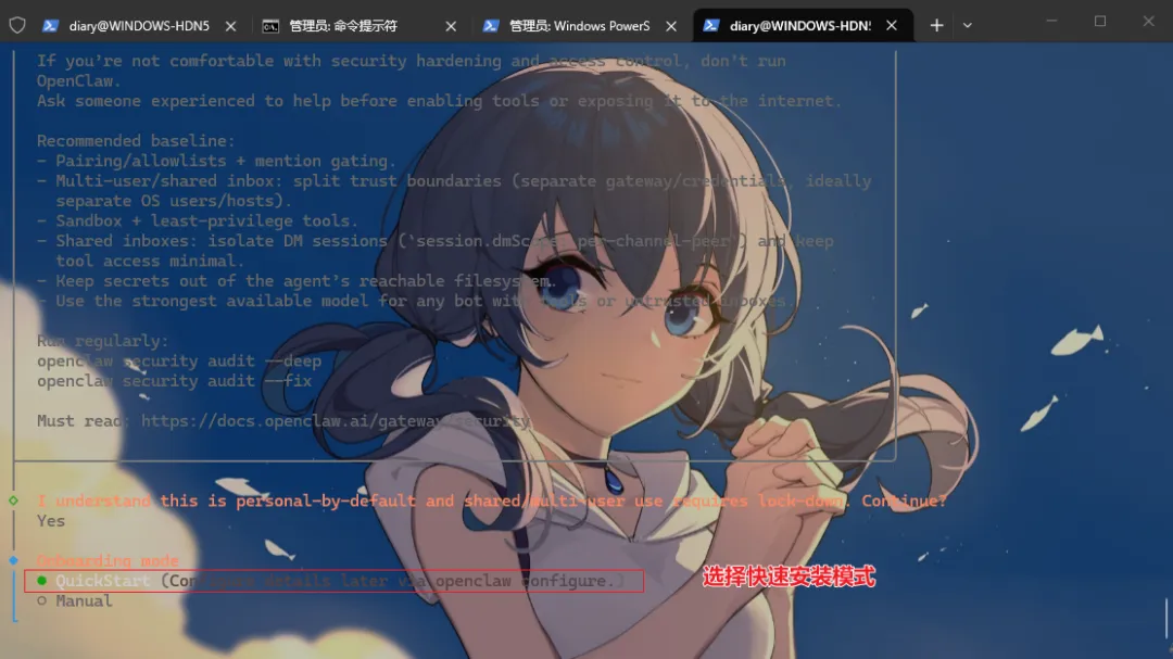 wsl -d Ubuntu # 进入WSL系统openclaw onboard # 进入OpenClaw新手向导