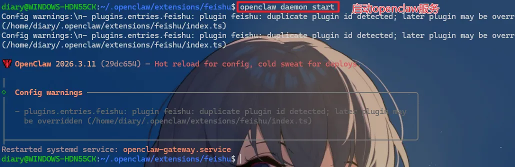 停止:openclaw daemon stop重启:openclaw daemon start