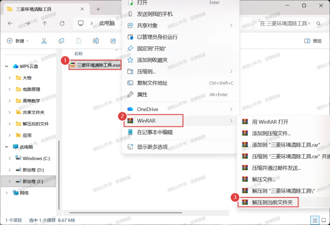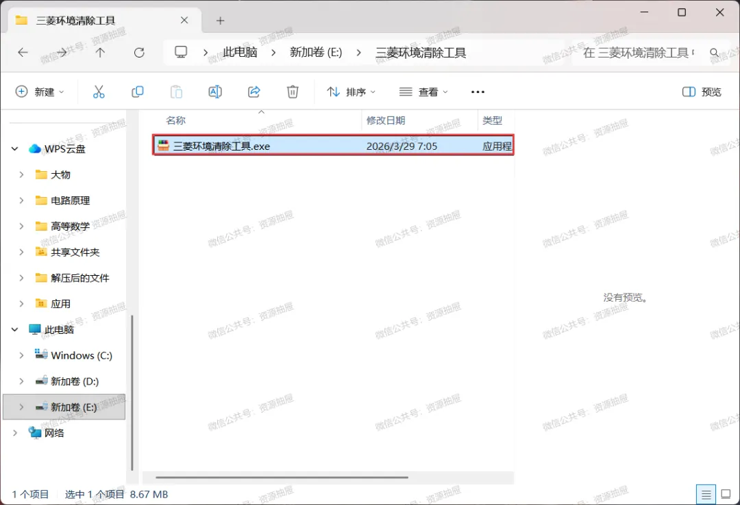2.将压缩包[三菱环境清除工具.exe]解压到当前文件夹